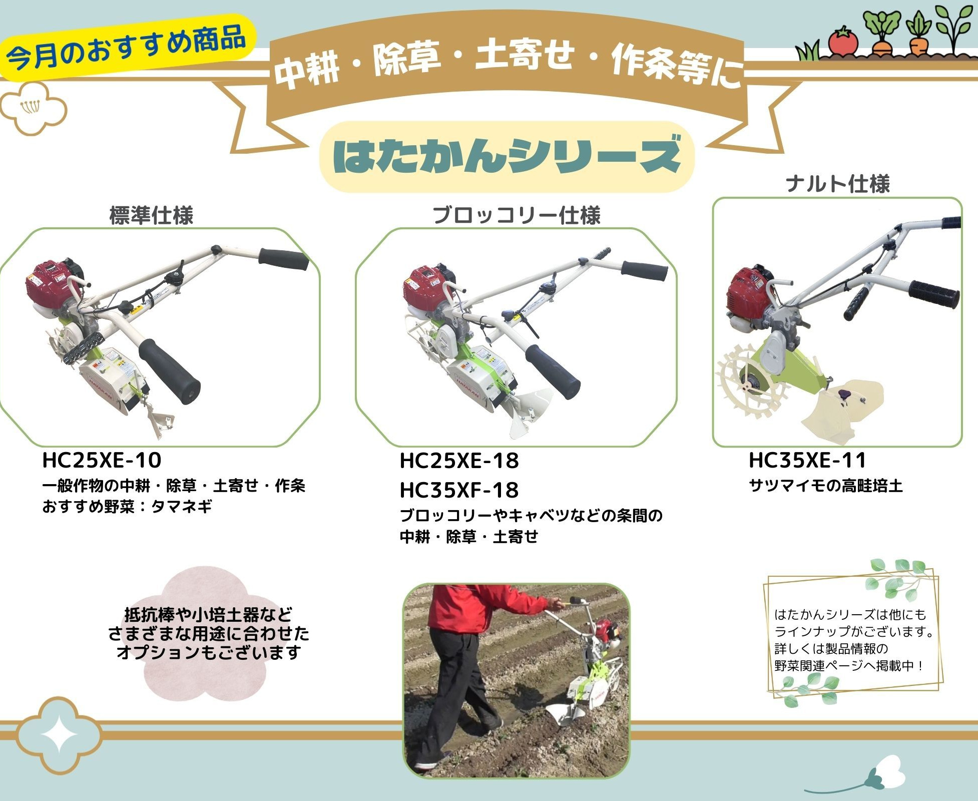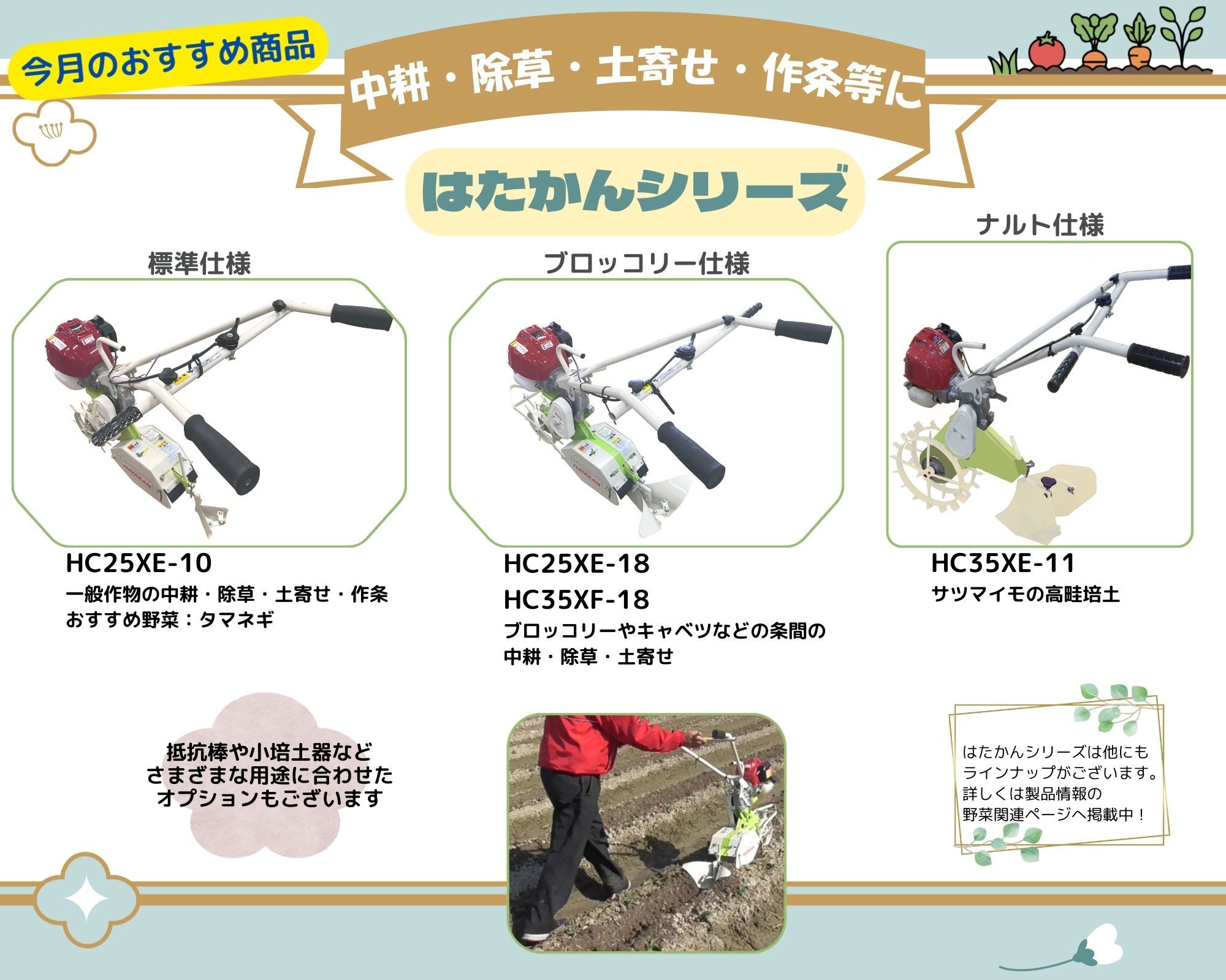 刈払機、籾すり関連商品、フレコンバックスケールシステム、野菜関連商品の総合カタログを更新しました。各商品紹介ページの左側に配置しております。